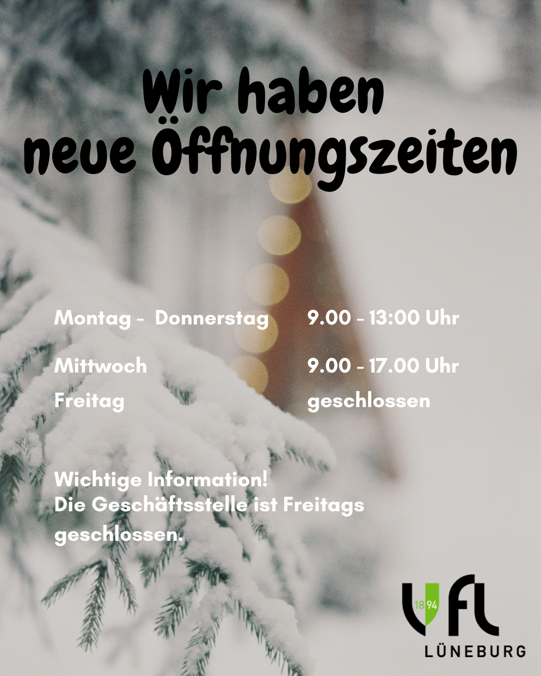 neue Öffnungszeiten Liebe Mitglieder, Liebe Interessierte, bitte beachten: Neue Öffnungszeiten der Geschäftsstelle:Montag, Dienstag & Donnerstag: 9–13 UhrMittwoch: 9–17 UhrFreitag: geschlossen Vielen Dank für euer